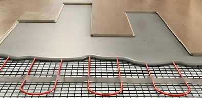Sistema de aquecimento composto por resistências elétricas instaladas sob o piso, proporcionando calor uniforme e rápido aquecimento dos ambientes.