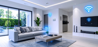 Soluções tecnológicas integradas para automação residencial, permitindo o controle de iluminação, temperatura, segurança e sistemas de aquecimento via dispositivos móveis.