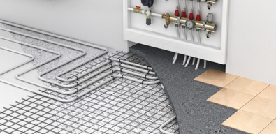 Sistema de tubulação instalado sob o piso que distribui água aquecida, proporcionando conforto térmico uniforme em todo o ambiente.