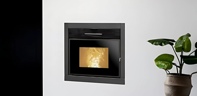 Lareira ecológica que utiliza pellets de madeira como combustível, oferecendo alto rendimento térmico com baixo impacto ambiental.